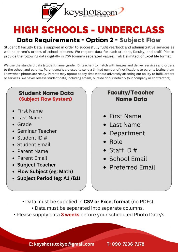 High Schools – Data Requirements – Underclass