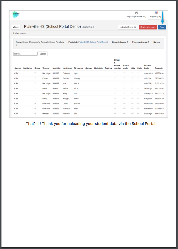 - Data MUST be uploaded 2 weeks prior to Photo Dates. If your data is not loaded on time, your Photo Dates may be cancelled. Our Team needs enough lead time to process your data and prepare Student & Faculty QR-Codes prior to your dates with enough lead time.